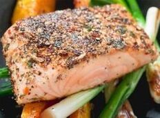 Prânz: somon la grătar cu muștar, caserolă din brânză de căsuță, Galet Ducan.